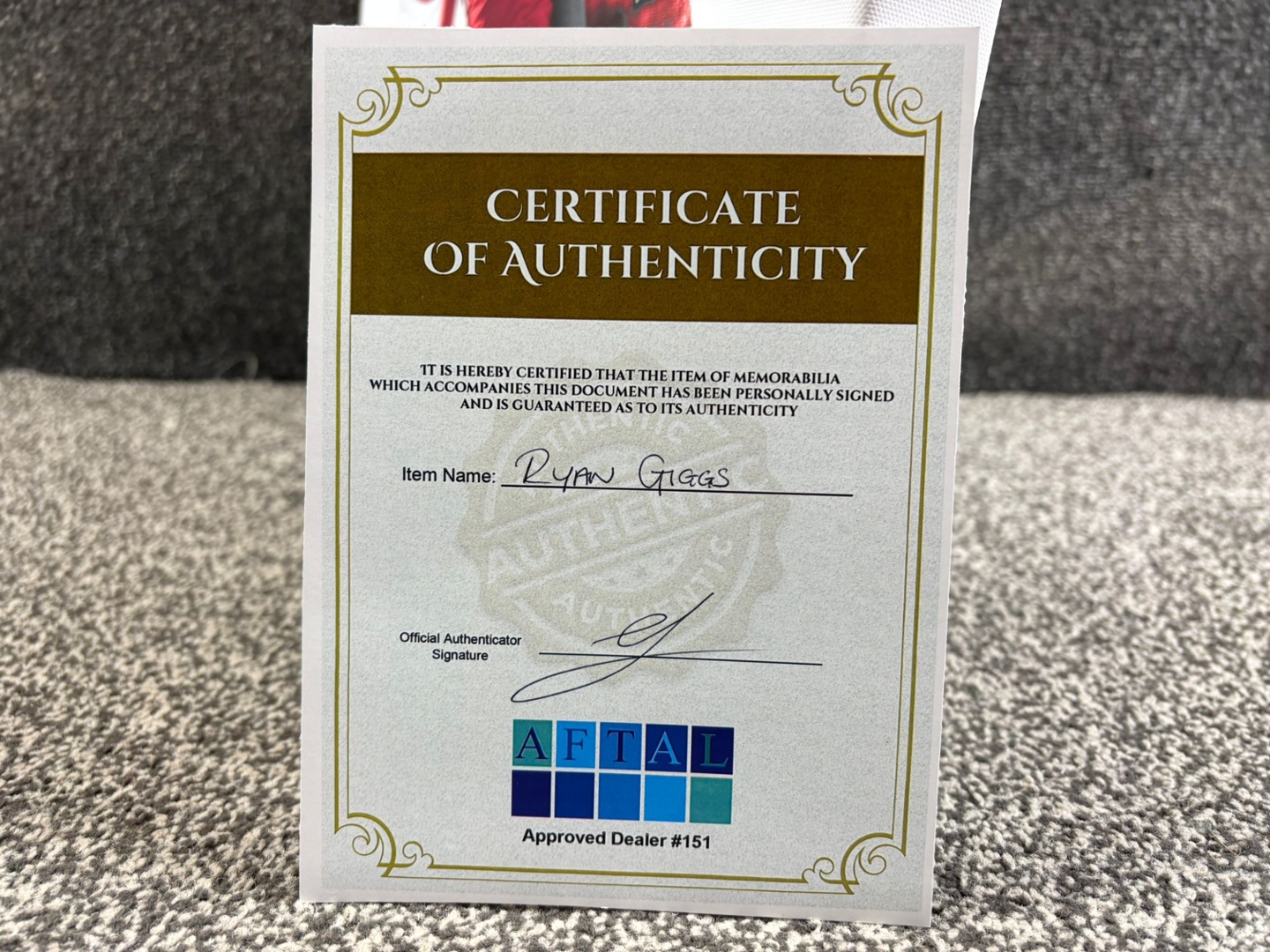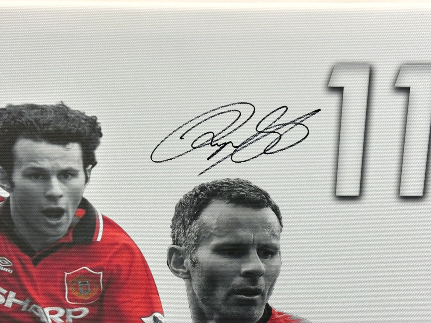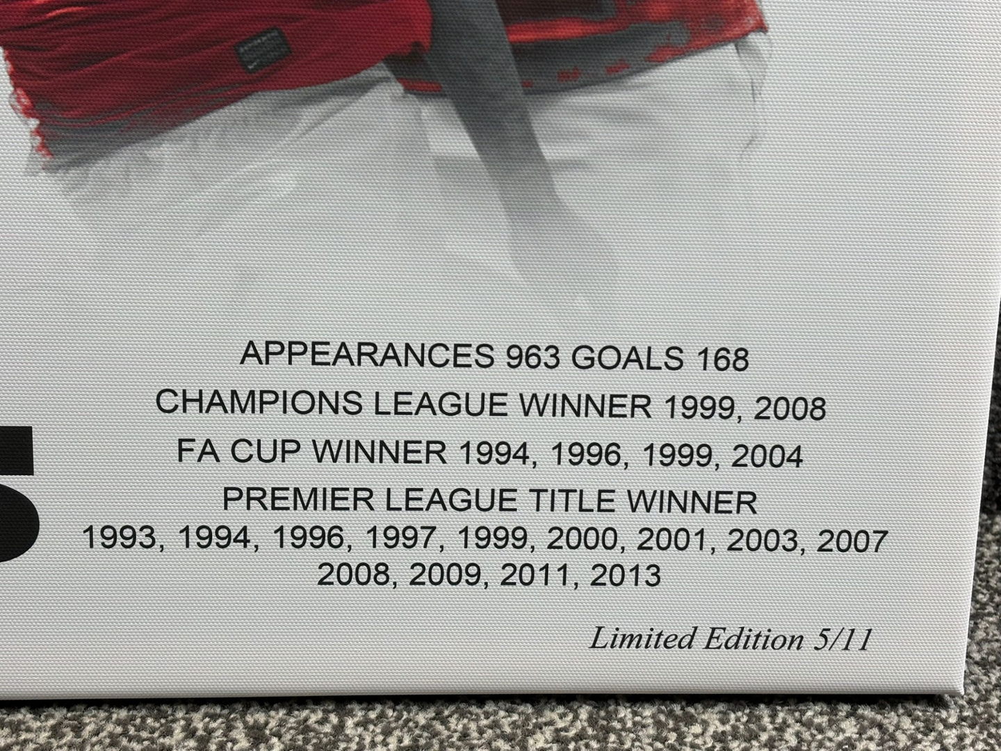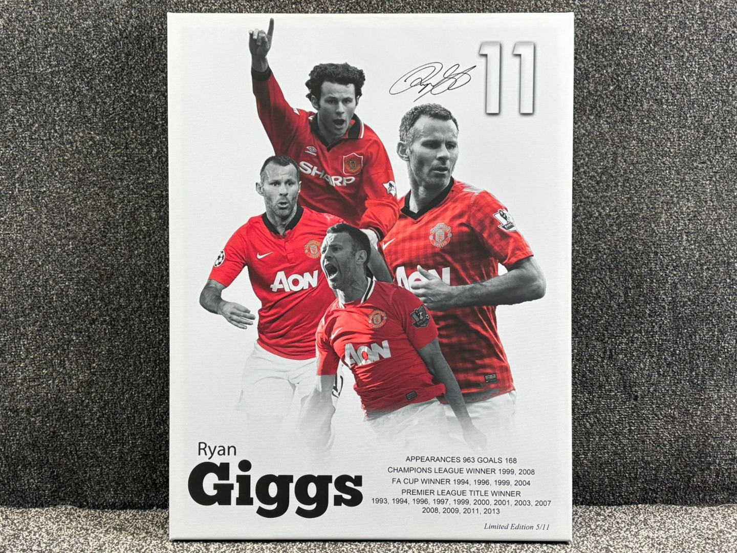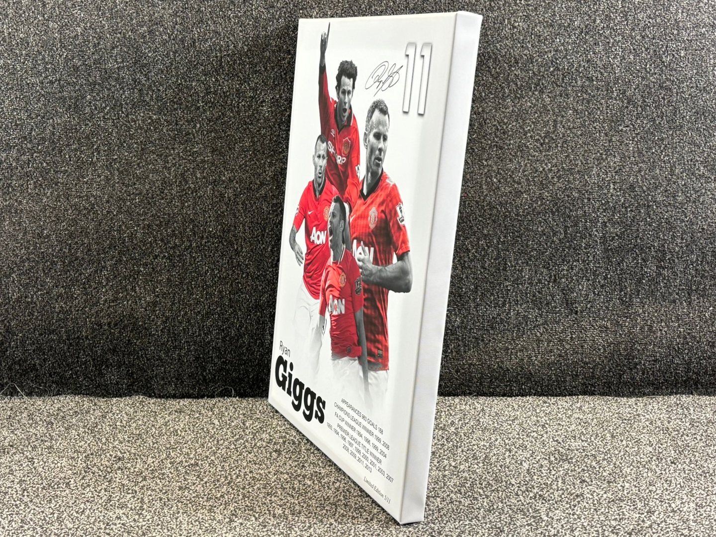 A signed and authenticated Ryan Giggs Man United Canvas. Approx 65cm height, 50cm width.