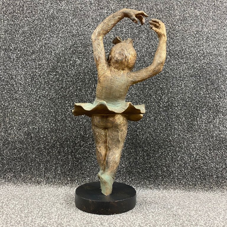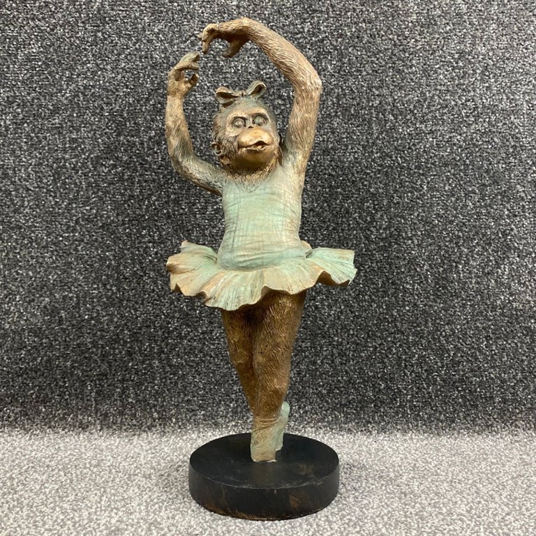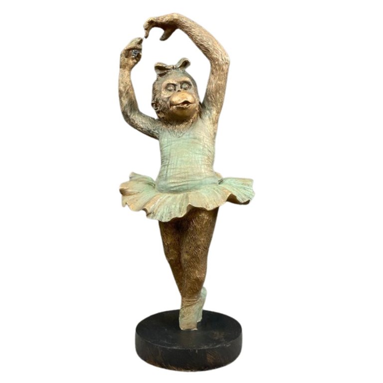 Crafted with meticulous attention to detail, the sculpture depicts a monkey gracefully posed in a ballet position, adorned with delicate ballet attire and poised for a performance. The intricate detailing captures the fluidity of movement and the whimsy of the subject, inviting viewers into a world of imagination and enchantment.