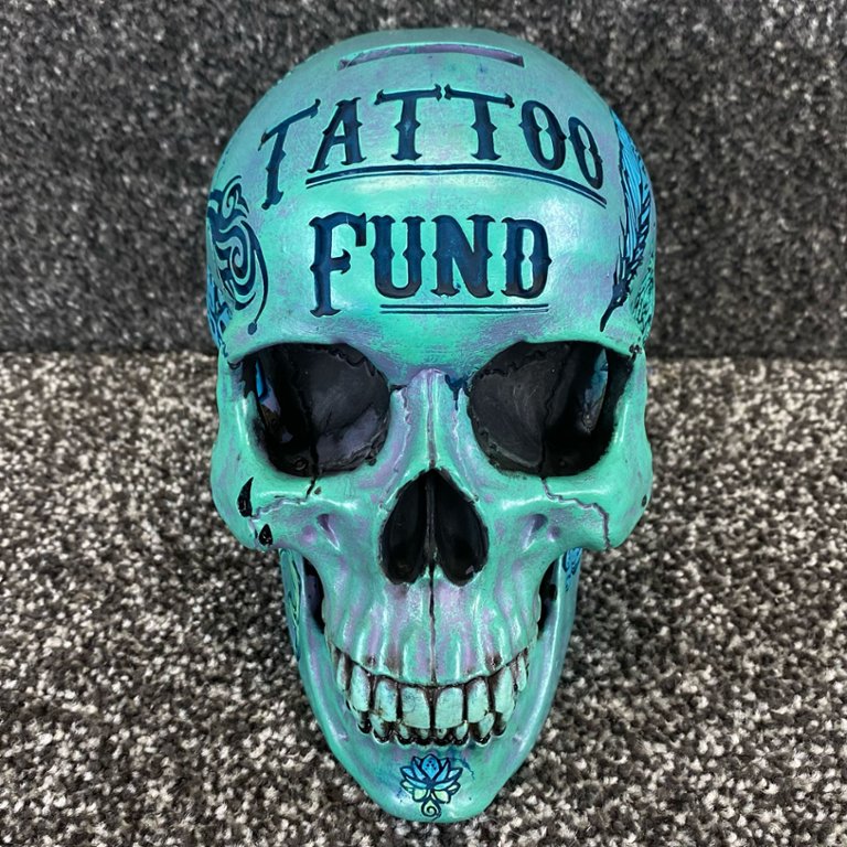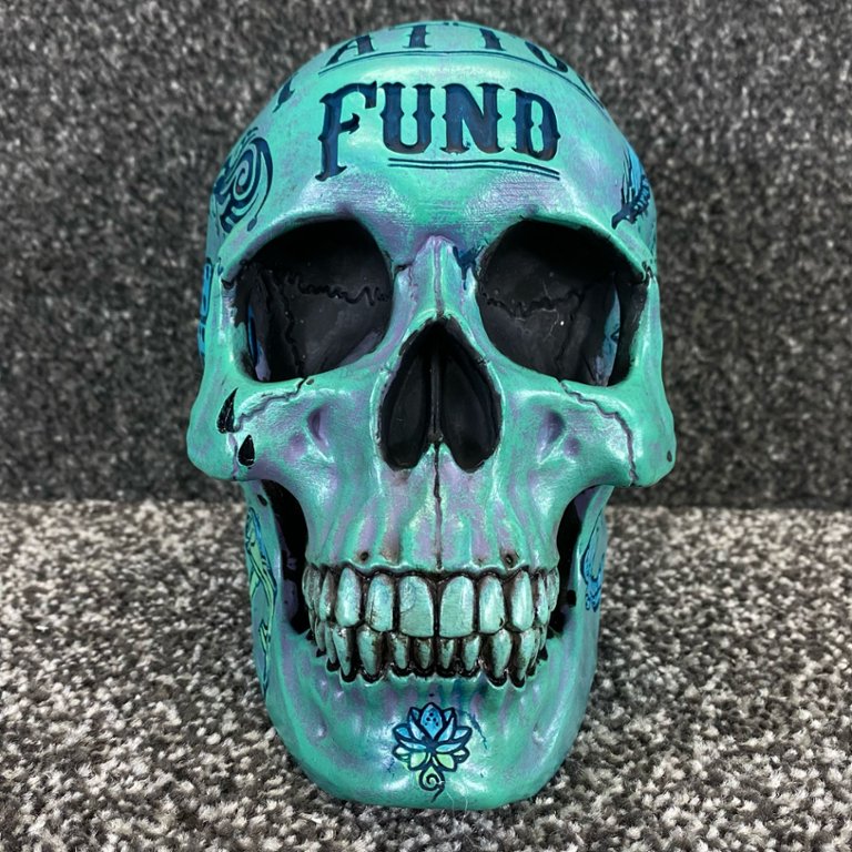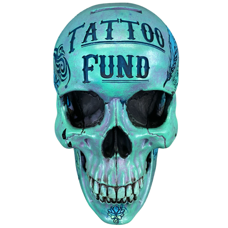 Celebrate the spirit of creativity and self-expression with this captivating Blue Tattoo Fund Skull sculpture. A symbol of individuality, freedom, and artistic expression, it serves as a reminder to embrace your unique identity and to express yourself authentically in all aspects of life.