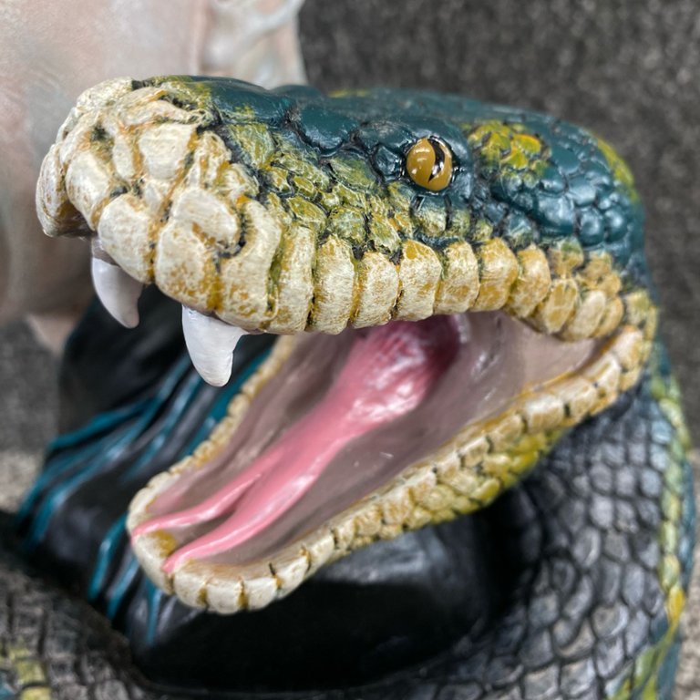 Crafted with meticulous attention to detail, the bust portrays the iconic features of Voldemort, from his snake-like nostrils to his piercing red eyes. Every crease and contour of his face is faithfully reproduced, capturing the essence of the character's sinister charisma and malevolent power.