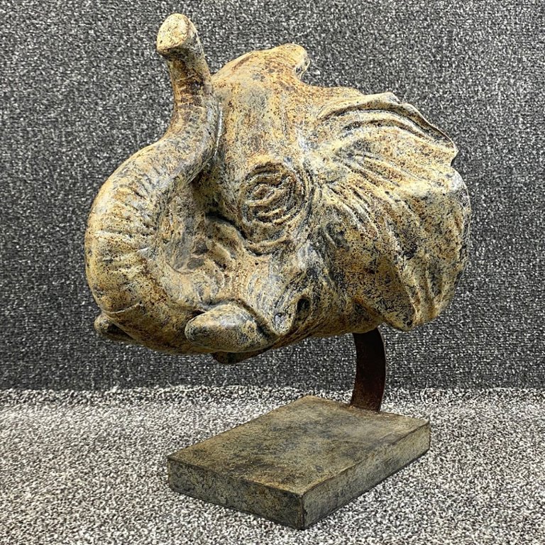 Crafted with meticulous attention to detail, the sculpture portrays the noble profile of an elephant, with its majestic tusks and expressive features intricately rendered to evoke a sense of strength, wisdom, and dignity. The rich texture and lifelike detailing of the material lend a sense of realism to the sculpture, inviting viewers to appreciate the beauty and complexity of this magnificent animal.