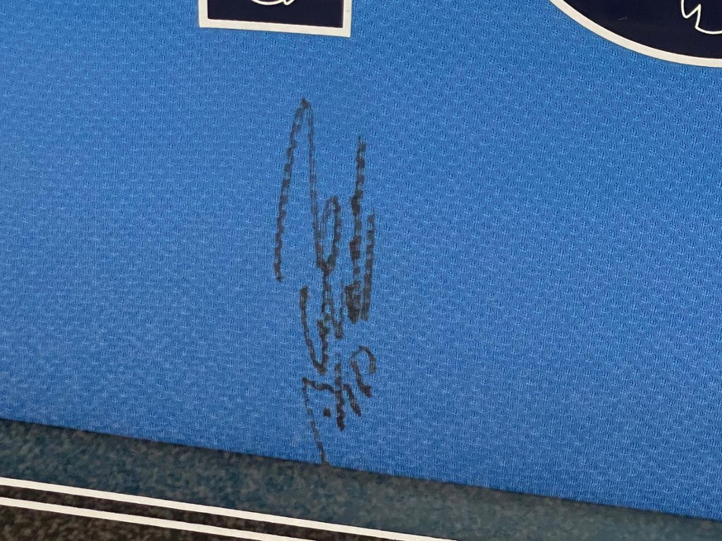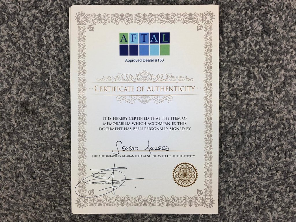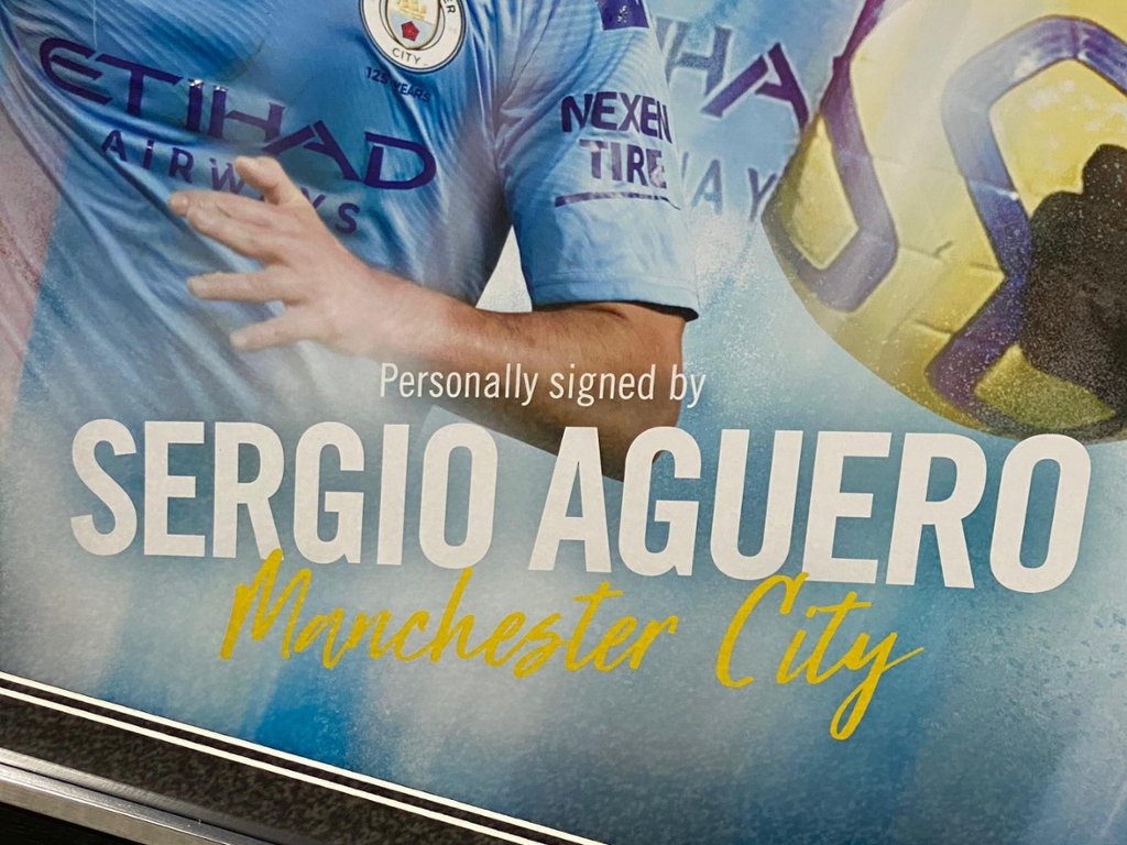 Aguero's signature on the football shirt adds immeasurable value and authenticity to this cherished item. Authenticated to guarantee its genuineness, the signature serves as a tangible link to the player. It celebrates his iconic status among Manchester City fans worldwide, making it a prized possession for collectors and enthusiasts alike.
