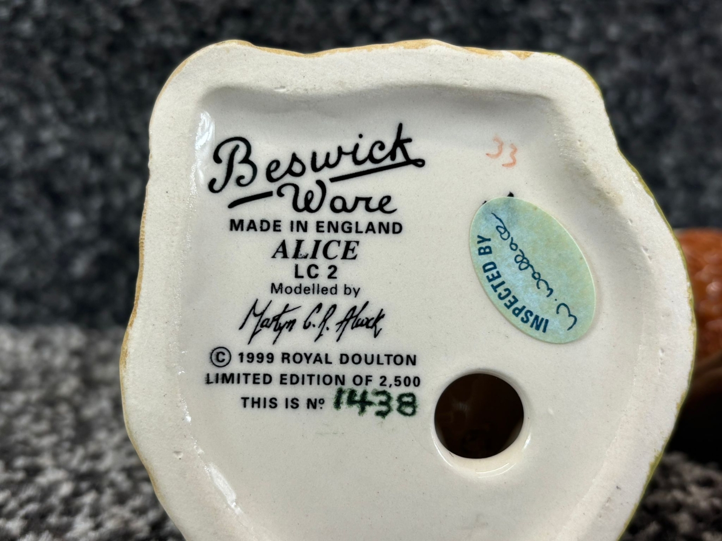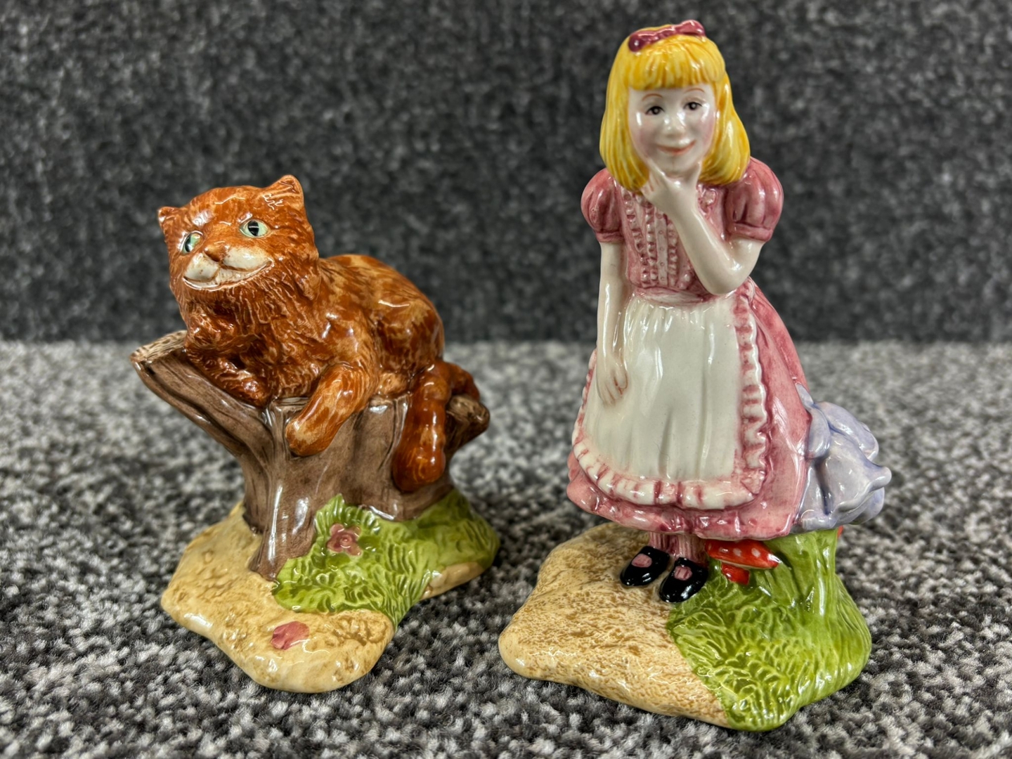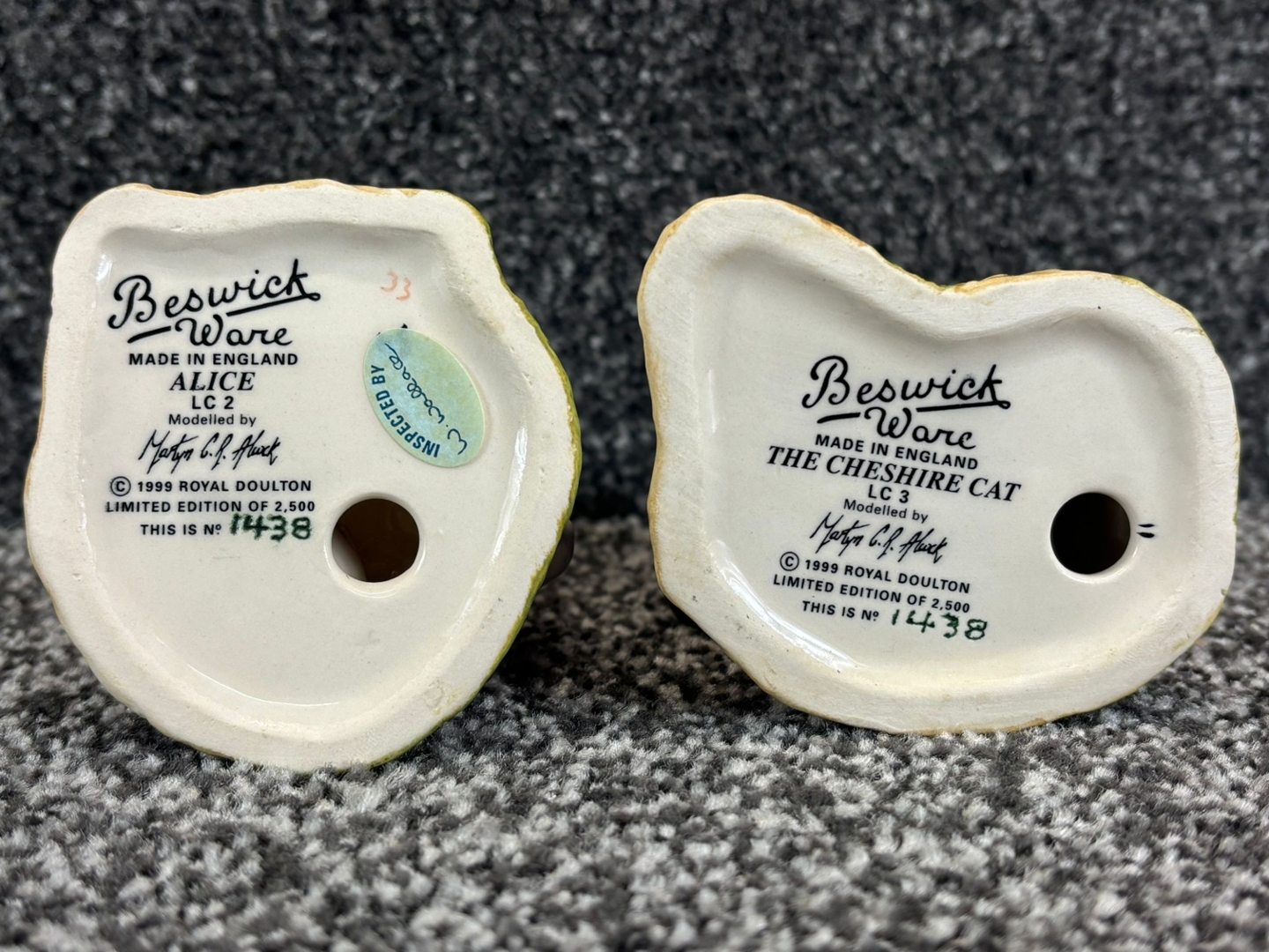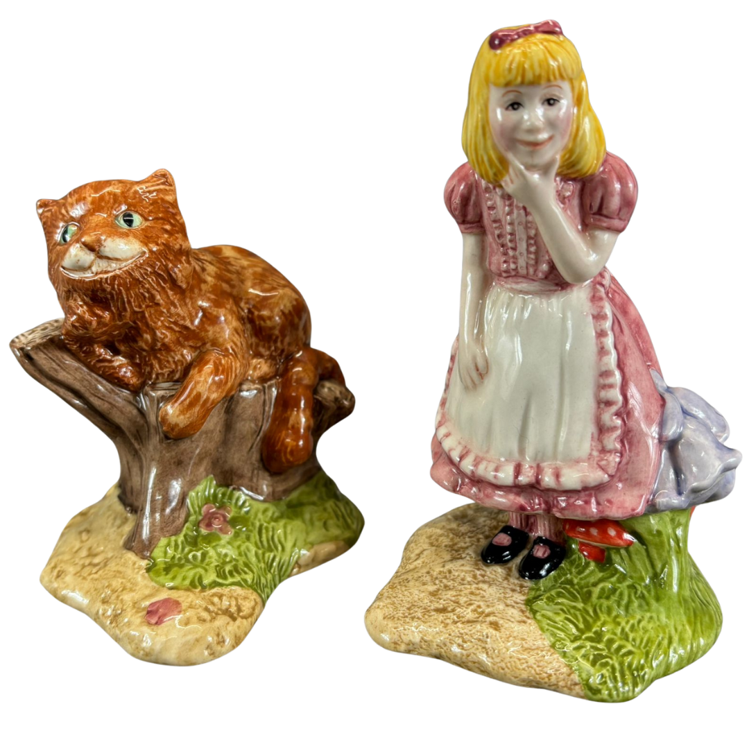 - > Set of 2 Beswick Porcelain Sculptures of Alice & The Cheshire Cat