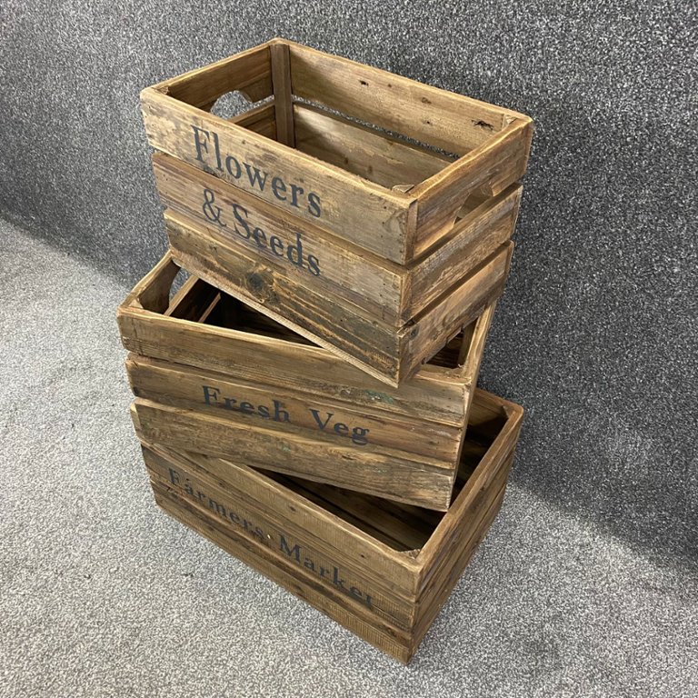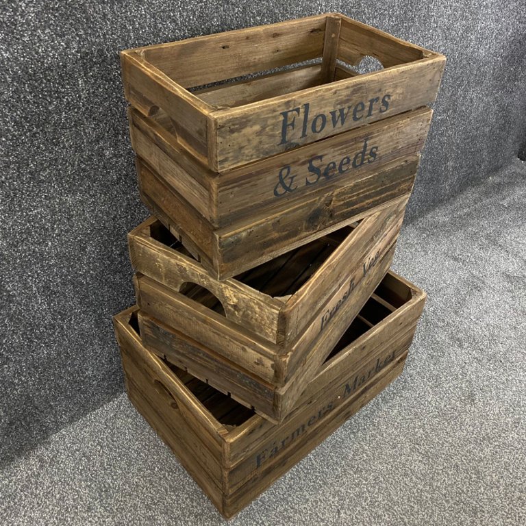 A set of three Flower & Grocery Style French Storage Boxes, a delightful combination of vintage-inspired design and practical functionality. These versatile storage boxes evoke the quaint charm of French markets and flower shops, adding a touch of rustic elegance to any space.