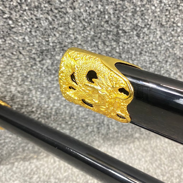 With an approximate overall length of 42 inches each, these swords command attention with their formidable size and exquisite craftsmanship. The blades are expertly crafted to replicate the traditional curvature and razor-sharp edge of the katana, while the black finish adds a touch of modern elegance to their design.