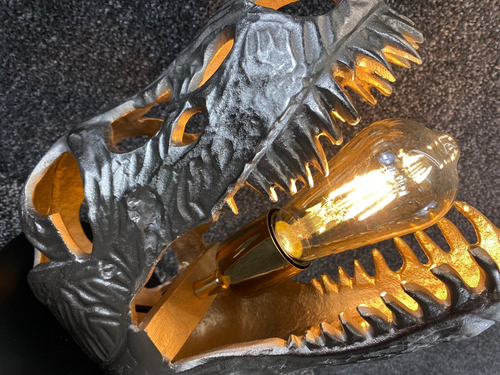 Overall, the silver Dinosaur Head Lamp is not just a source of light but also a conversation piece and a fun decorative accent that adds personality to any room it inhabits.
