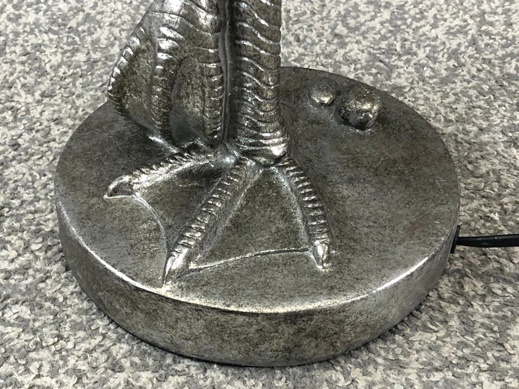 Crafted with meticulous attention to detail, the lamp features a silver-finished flamingo figurine standing tall on a sturdy base. The lifelike representation of the flamingo's elegant form adds a touch of whimsy and sophistication to any room.