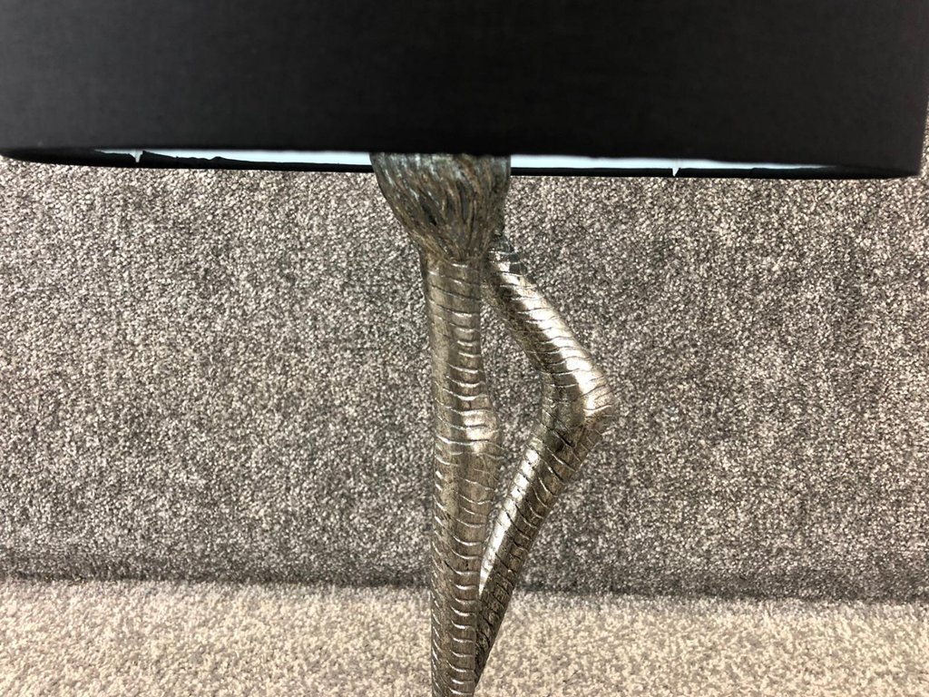 Whether placed on a side table, console or as a statement piece in a living room or bedroom, the Silver Flamingo Style Tabletop Lamp adds a touch of timeless beauty and refinement to your home. Illuminate your space with grace and elegance, and let this exquisite lamp become the centerpiece of your decor.