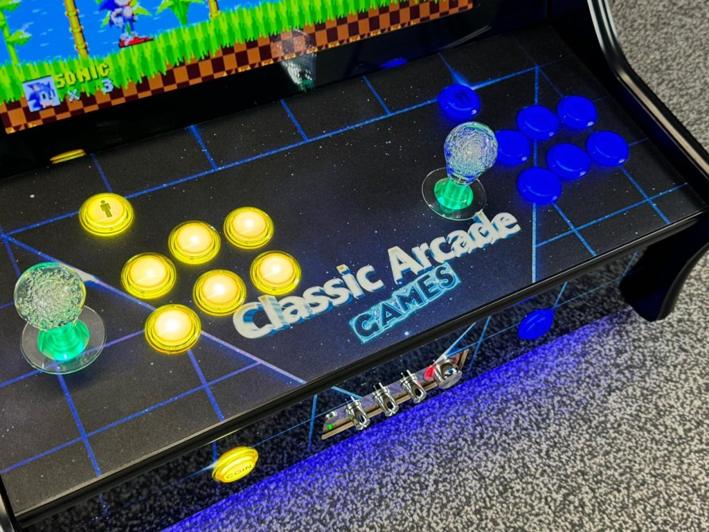 Take control with LED joysticks and buttons that respond to your every move with precision and flair. The LED under-counter lights and light-up marquee add to the Sonic experience, illuminating the arcade machine with a dynamic glow that captures the spirit of the beloved franchise.