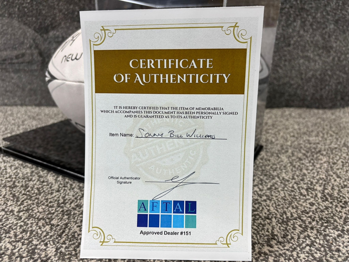 A signed and authenticated Sonny Bill Williams Signed New Zealand Rugby Ball in a presentation case. Approx 9" height, 13" width.