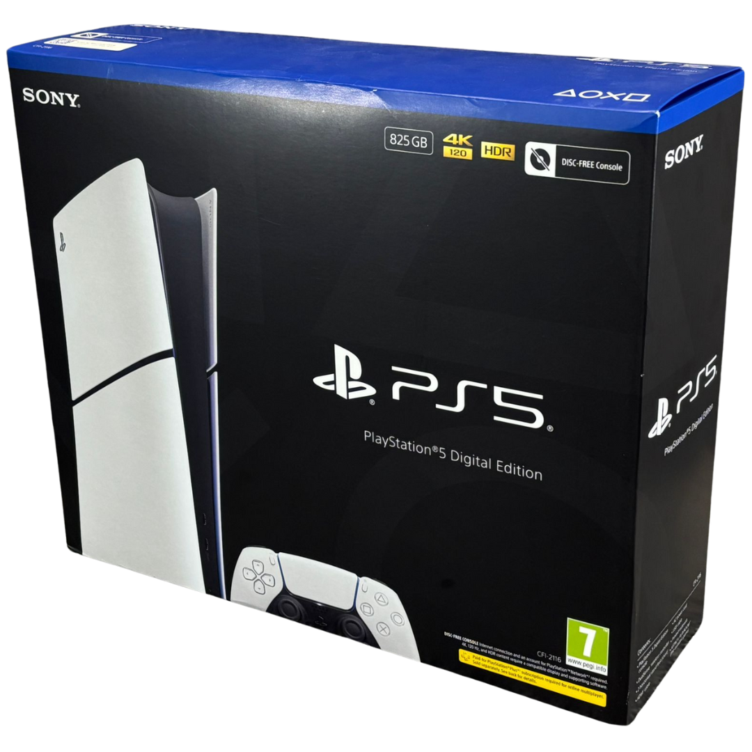 A brand new Sony PlayStation 5 Digital Edition with 825GB storage.