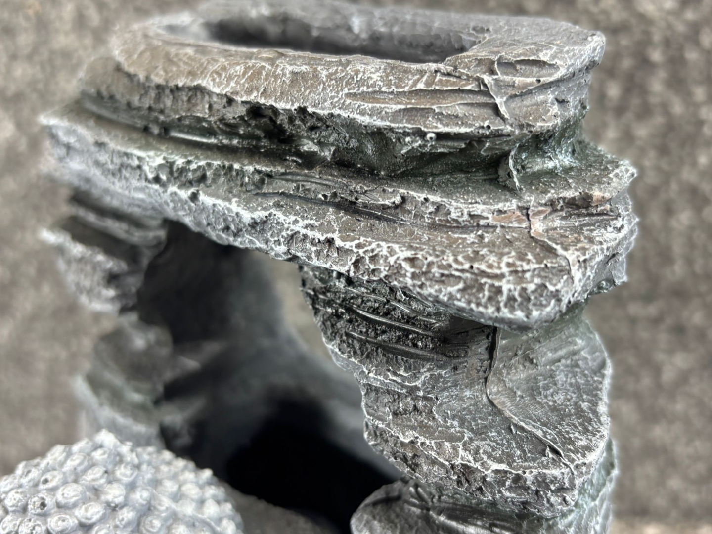 With approximate dimensions of 24cm in height, 18cm in width, and 18cm in depth, this fountain is compact enough to fit on tabletops, shelves, or small garden spaces, while still serving as a captivating focal point. Its stone-like texture and timeless design make it suitable for a wide variety of interiors and outdoor settings.