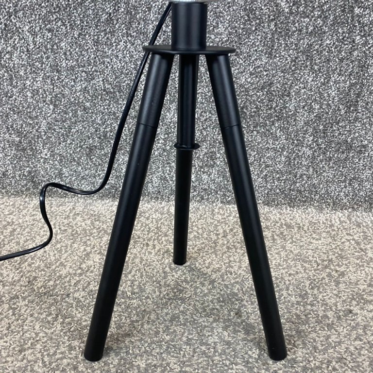 Perched atop a sturdy tripod base, this lamp balances form and function with effortless grace. The adjustable legs offer both stability and versatility, allowing you to customize the lamp's height and positioning to suit your space and preferences. Whether placed on a desk, side table, or mantelpiece, it serves as a striking focal point that elevates any room with its distinctive aesthetic.