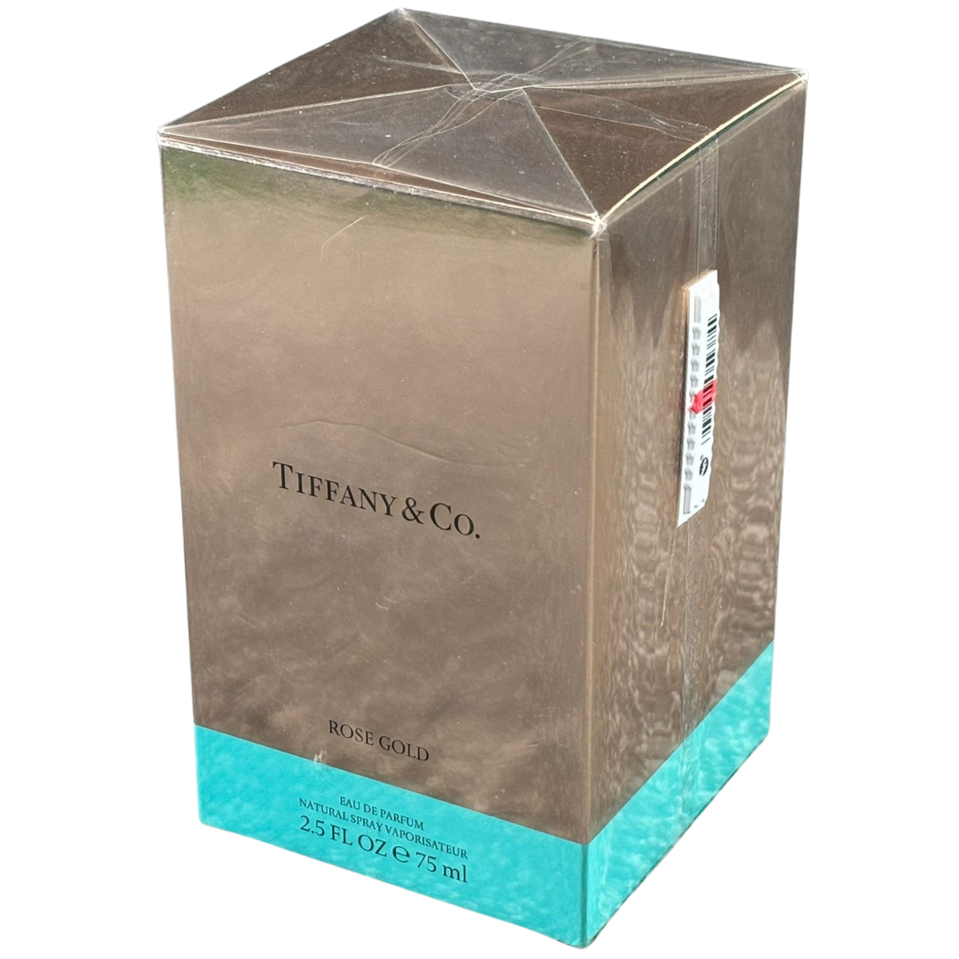 A 75ml bottle of Tiffany & Co Rose Gold Eau De Parfum, presented in its original presentation box and offering a luminous, contemporary fragrance inspired by modern elegance. This refined scent reflects the sophistication and understated luxury synonymous with the Tiffany & Co name.