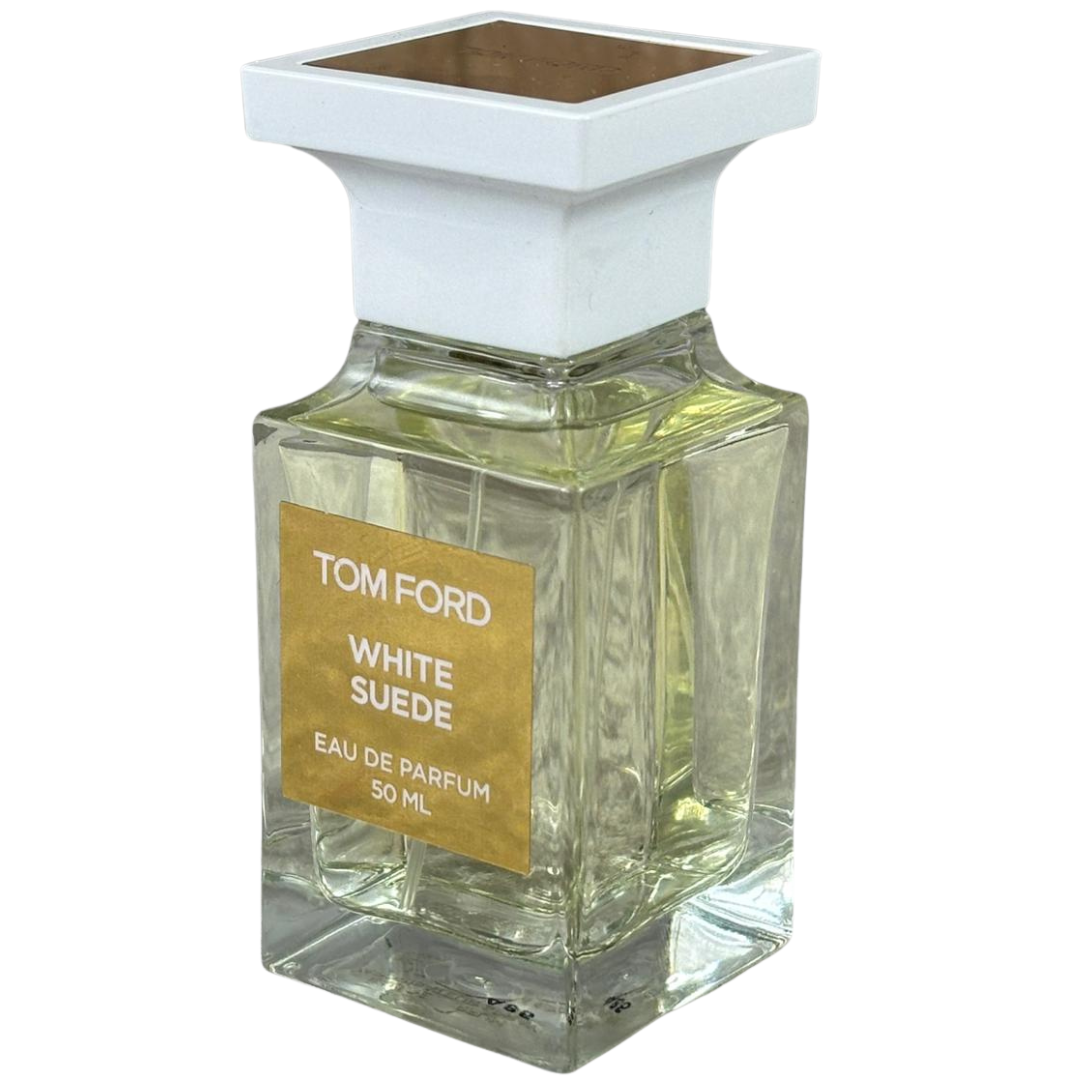 A 50ml bottle of White Suede Eau De Parfum by Tom Ford. This elegant Private Blend fragrance is renowned for its soft, refined character, combining delicate florals with smooth suede and warm undertones. Subtle yet captivating, it delivers a clean and sophisticated presence that feels effortlessly luxurious.