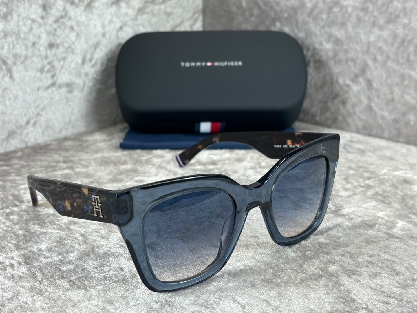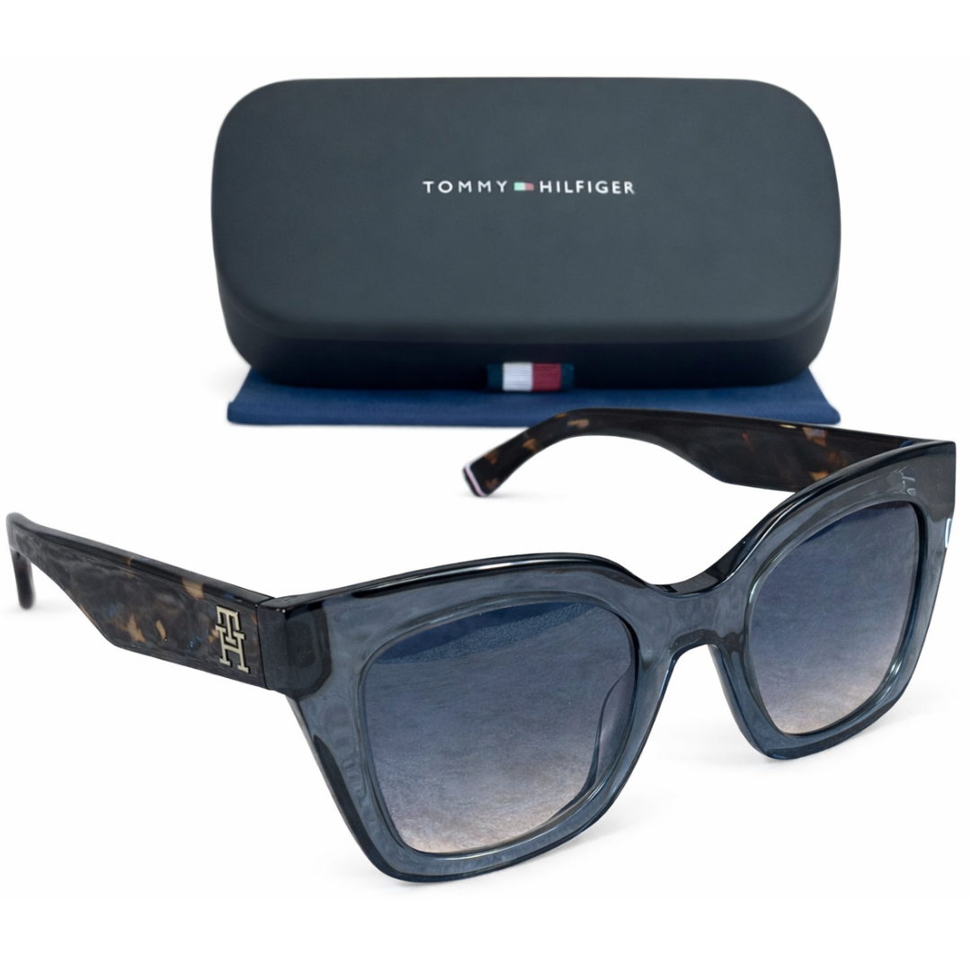 A Brand new and unused, these Tommy Hilfiger Square sunglasses offer a bold yet refined silhouette with contemporary appeal. The structured square frame in a rich blue tone creates a confident, fashion-forward look, perfectly complemented by gradient tinted lenses that add depth and sophistication. Designed to flatter a variety of face shapes, this statement style blends everyday wearability with standout design.