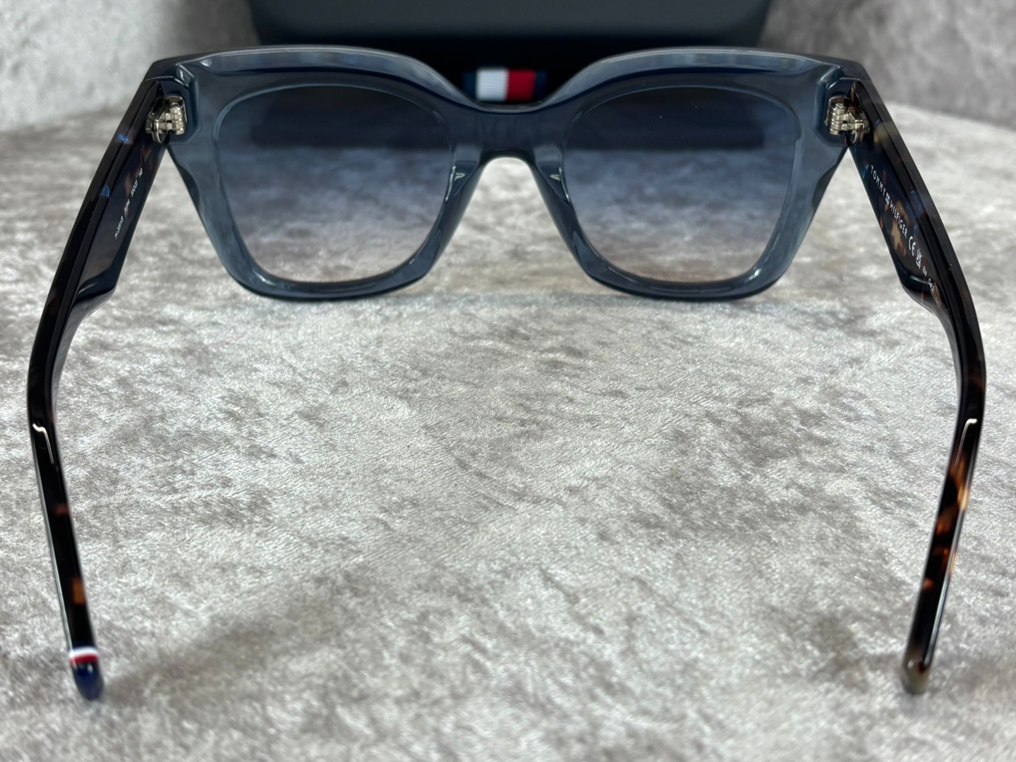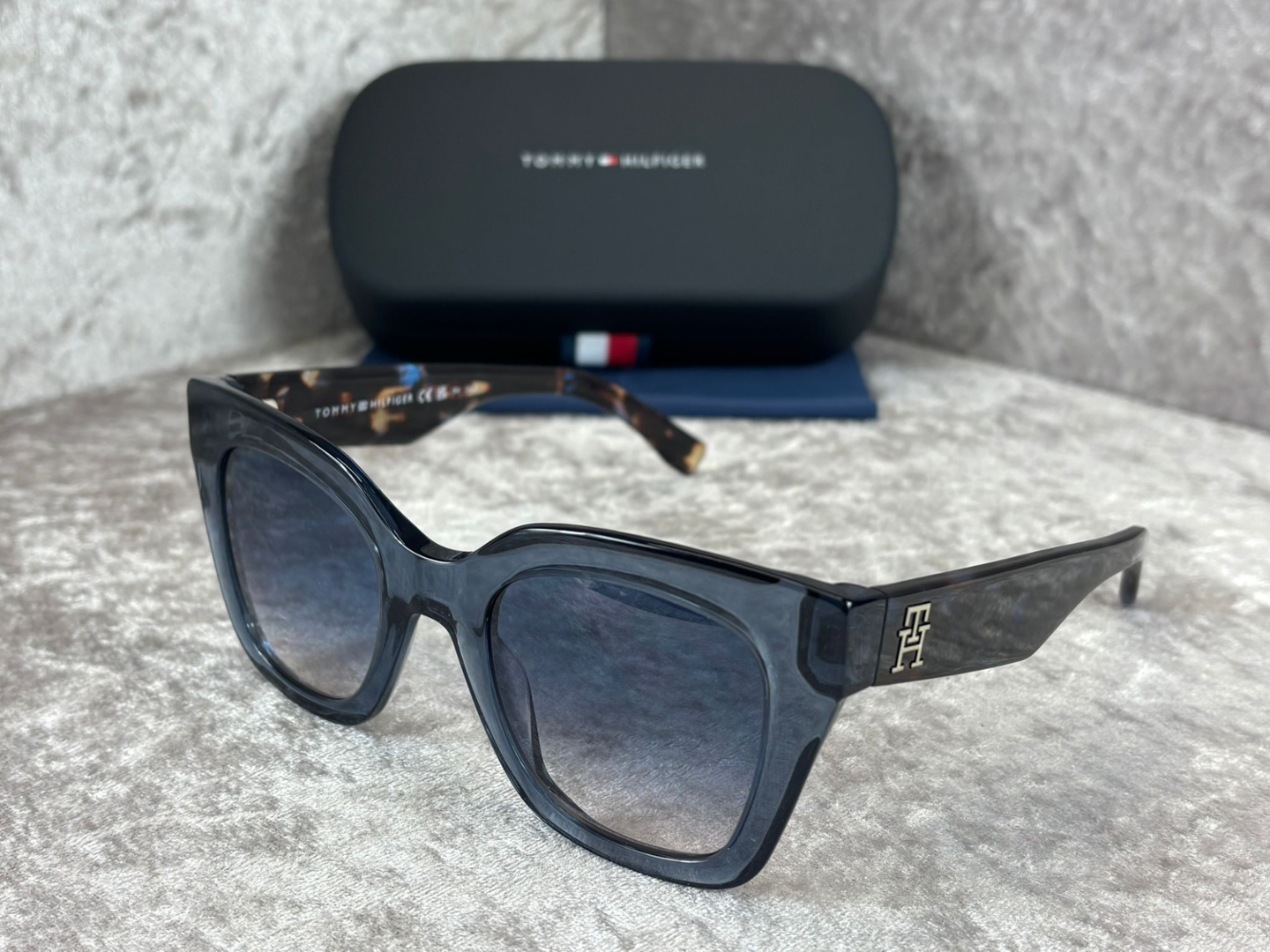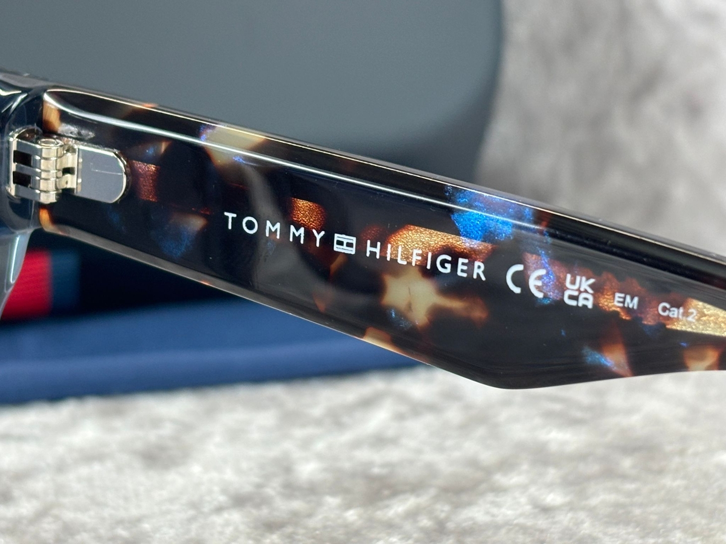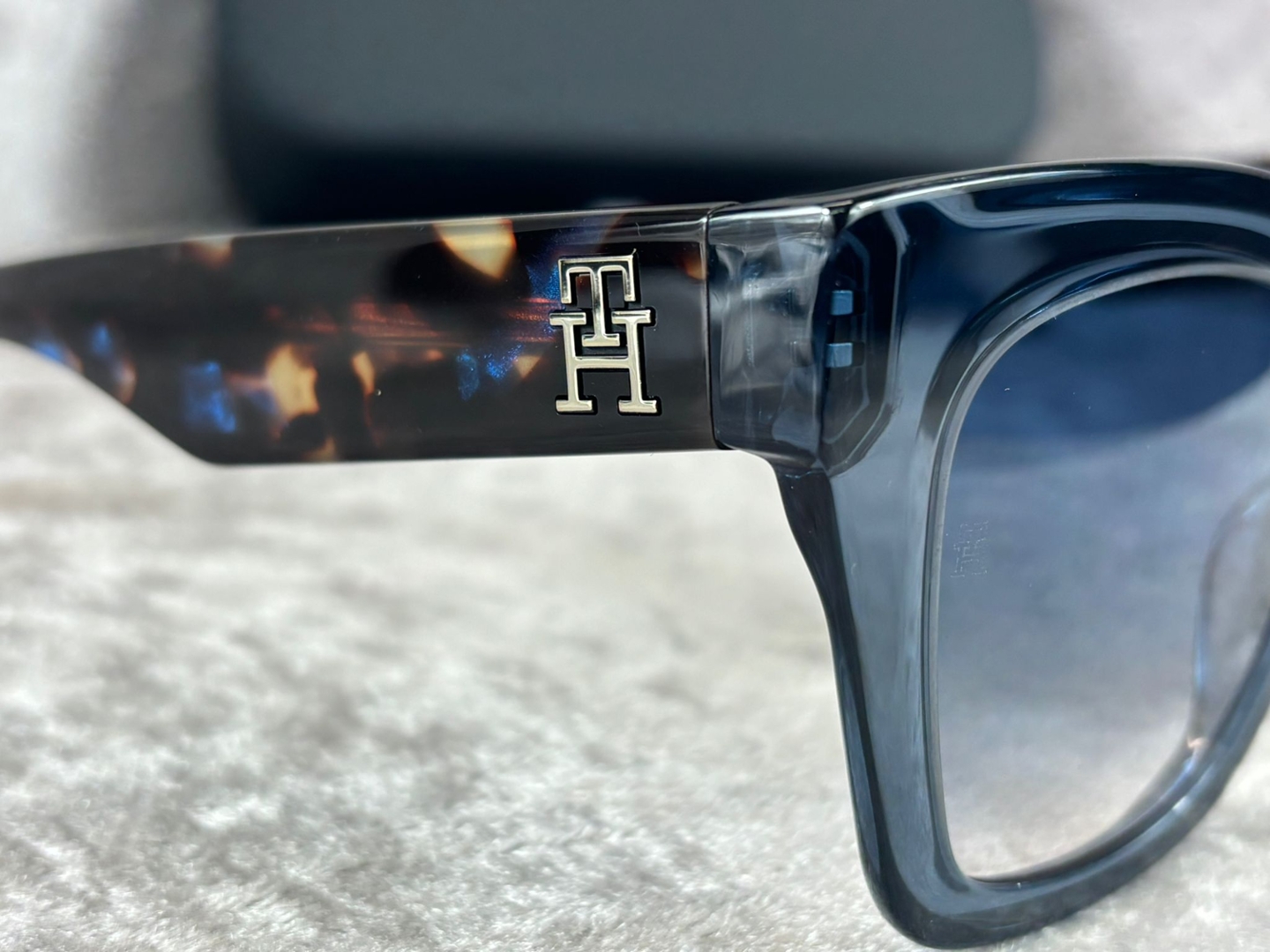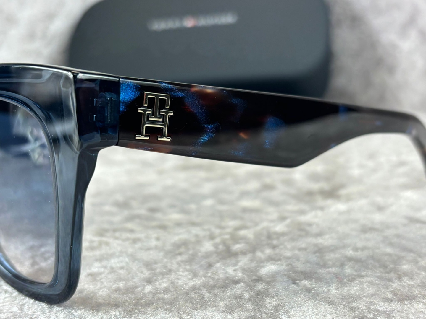 The temples feature subtle tortoiseshell detailing, enhanced by a metallic Tommy Hilfiger monogram accent that adds a premium finishing touch. Clean lines and smooth contours give the frame a polished, high-quality feel, while the lightweight construction ensures comfortable wear throughout the day. Signature branding is present yet understated, reflecting the brand’s balance of heritage and modern style.