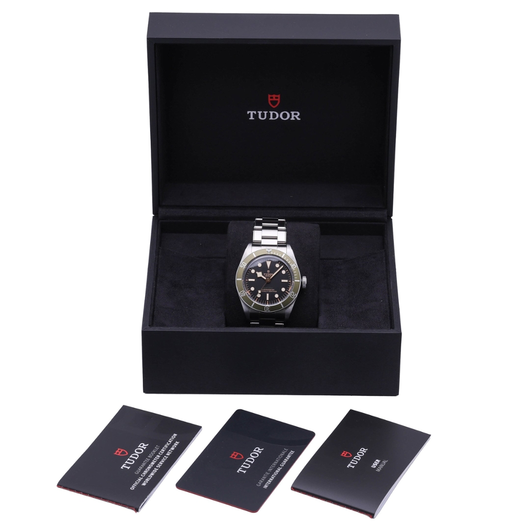 A Tudor Black Bay Harrods Watch, Stainless Steel with a Green Bezel on a Black Dial