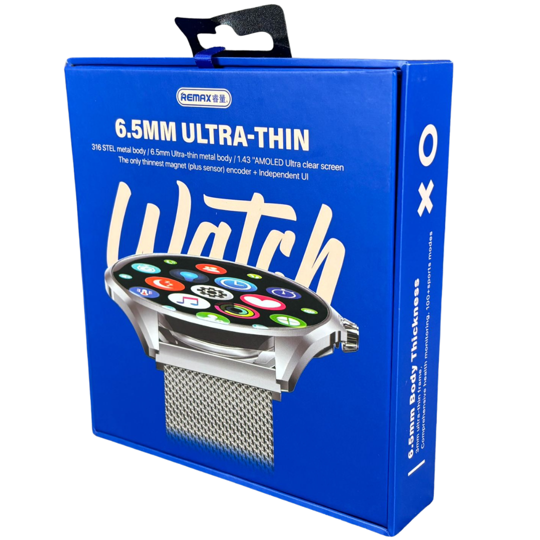 Ultra-Thin 6.5mm Smart Watch with AMOLED Display & Stainless Steel Design