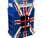 A Union Jack telephone box style side table cabinet is a bold and eye-catching statement piece, combining iconic British design with practical everyday use. Finished in deep blue with a striking hand-painted Union Jack motif, it brings character, colour, and a distinctly British charm to living rooms, bedrooms, offices, or themed interiors.