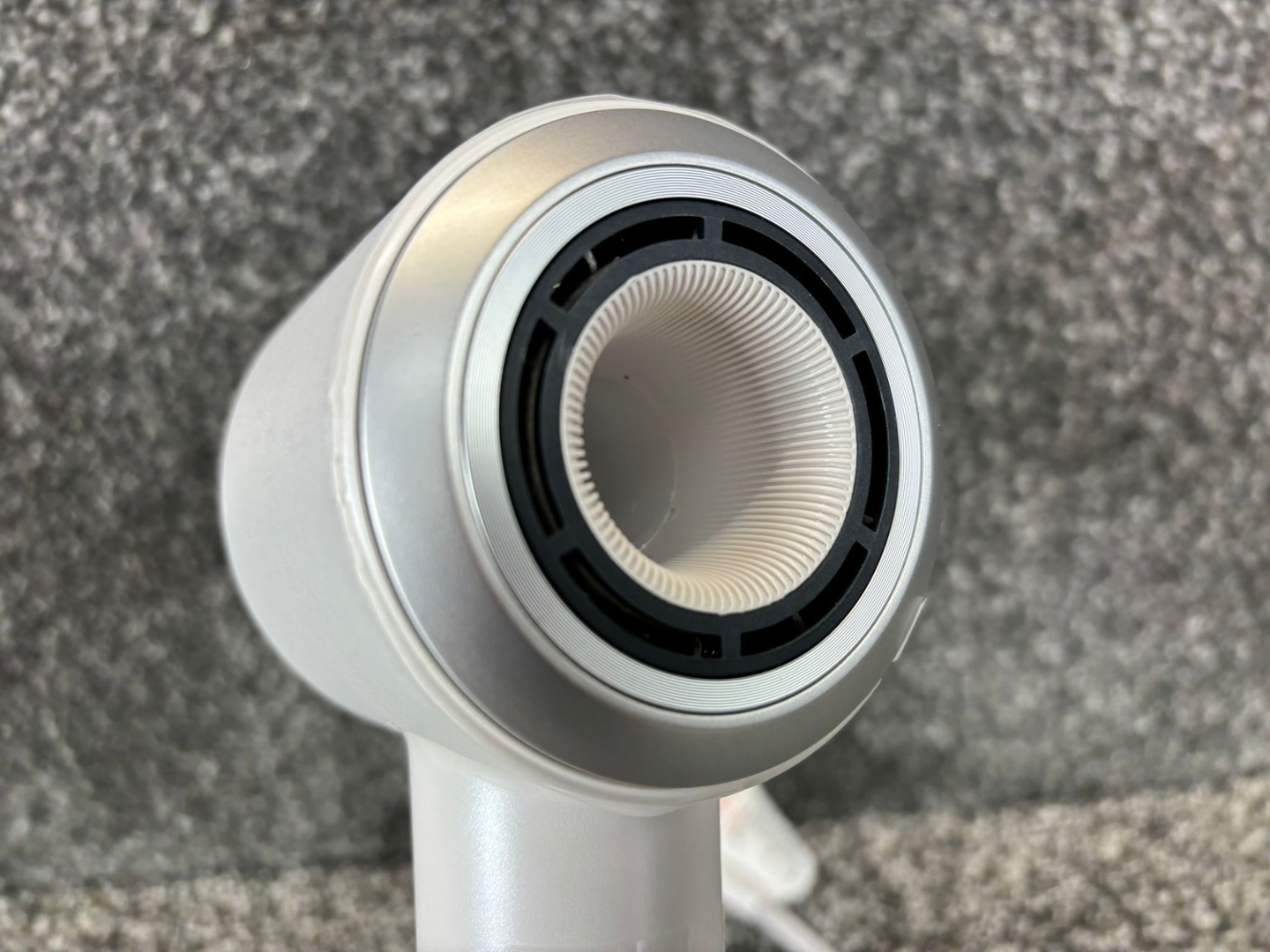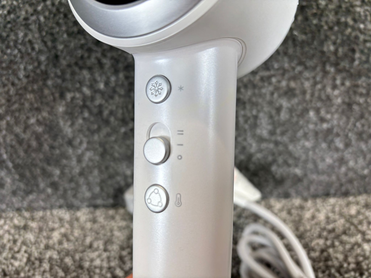 A brand new White Plasma Hair Dryer with Smart Temperature Control.