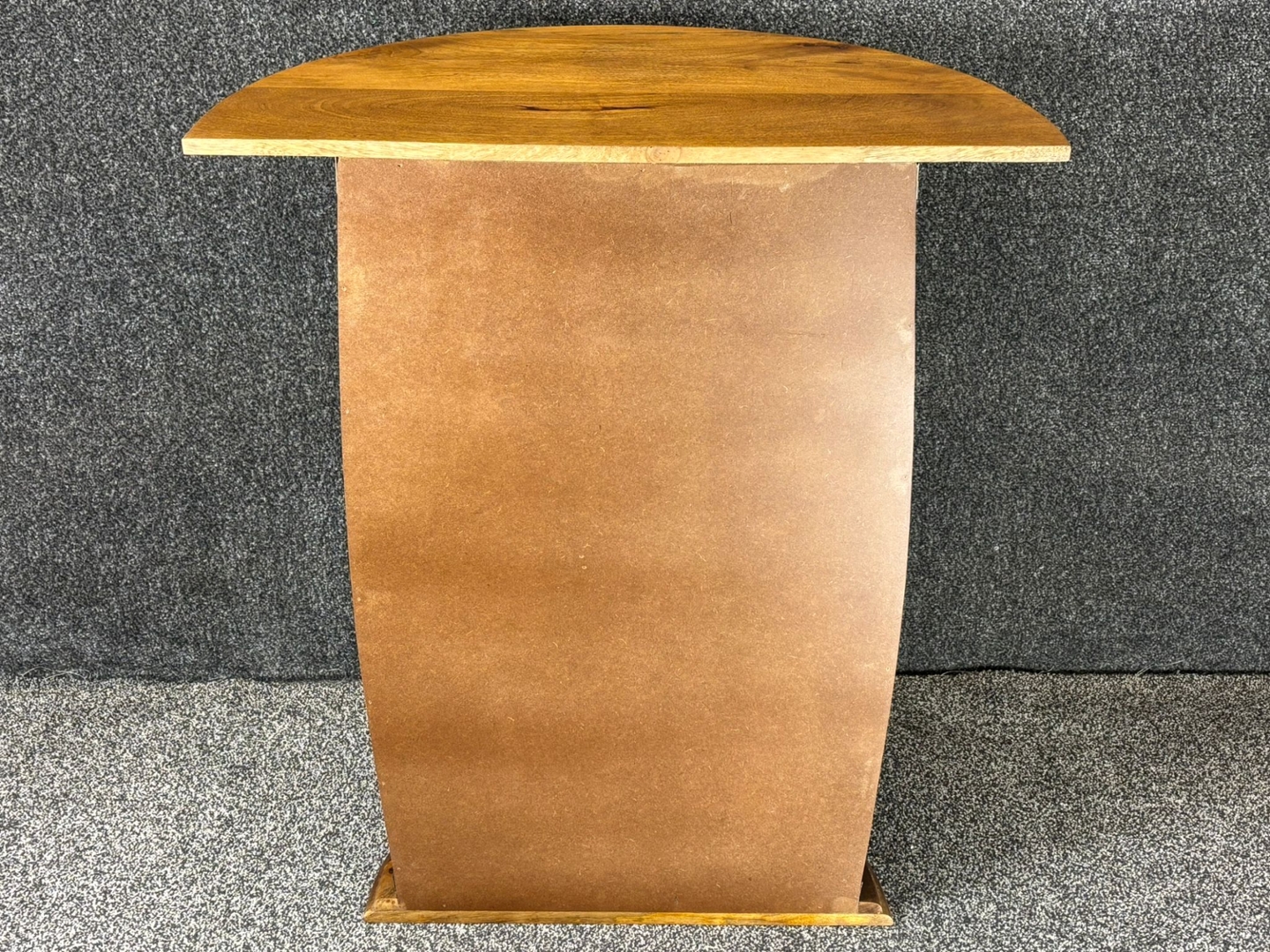 warm natural wood finish, it features a curved profile that gives