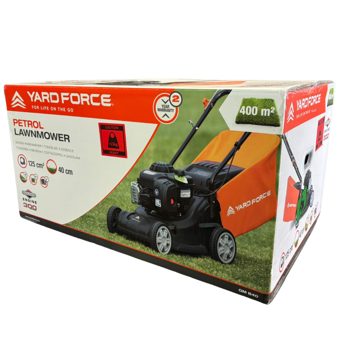 A brand new Yard Force 40cm push petrol lawnmower is a reliable and practical choice for maintaining small to medium-sized gardens with ease. Powered by a robust 127cc petrol engine, it delivers consistent cutting performance without the restriction of cables, making it ideal for users who value freedom of movement and dependable power. The compact 40cm cutting width allows for precise manoeuvring around borders, paths, and garden features while still covering ground efficiently.