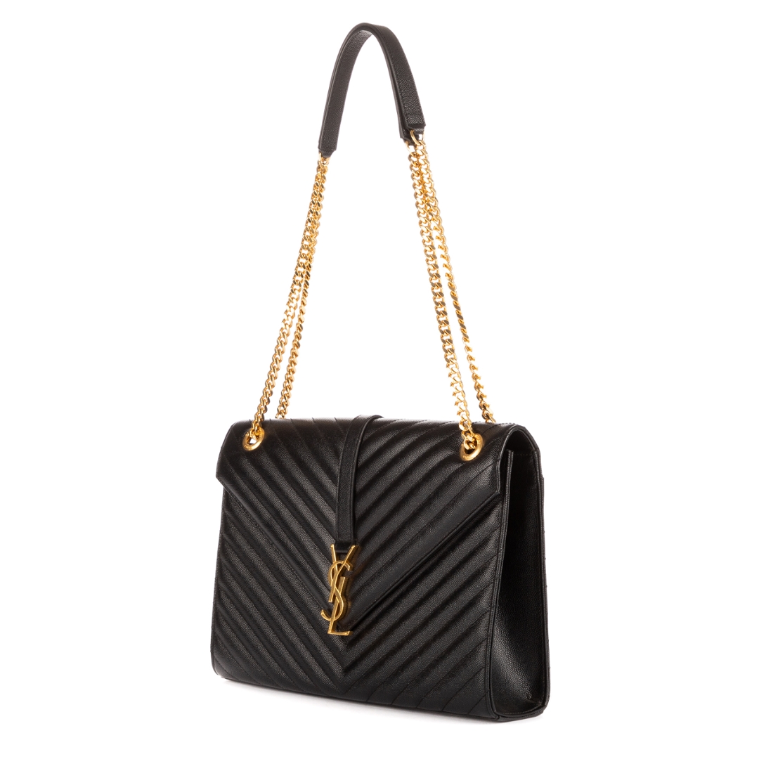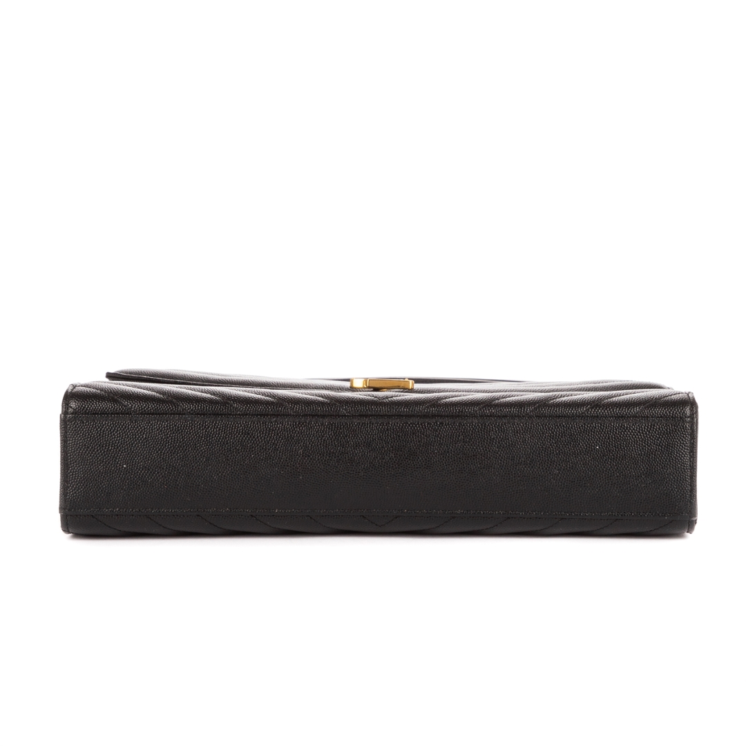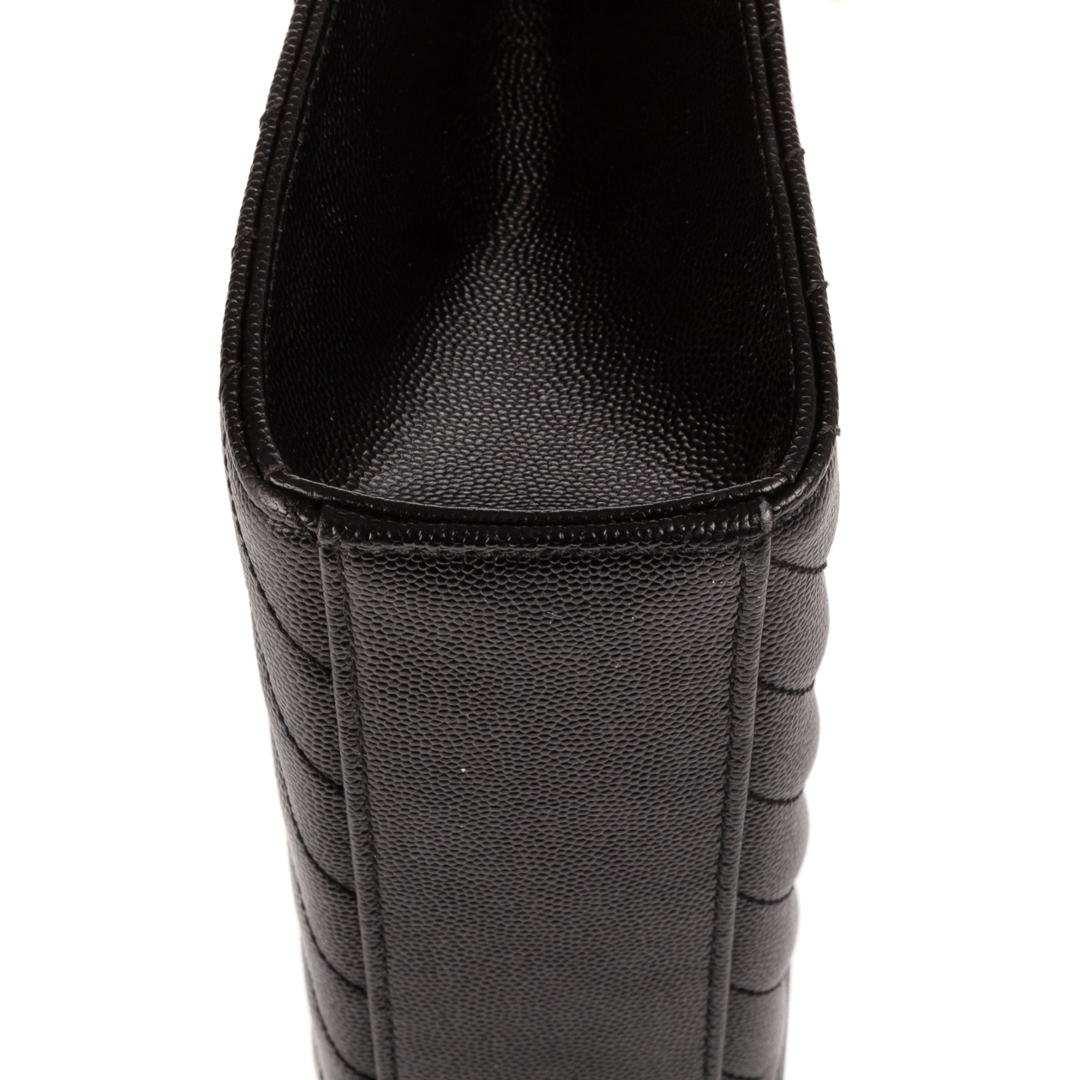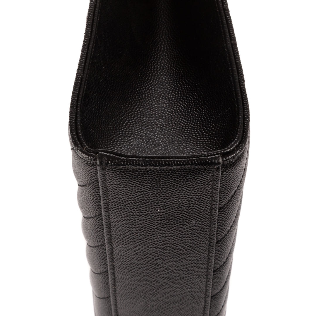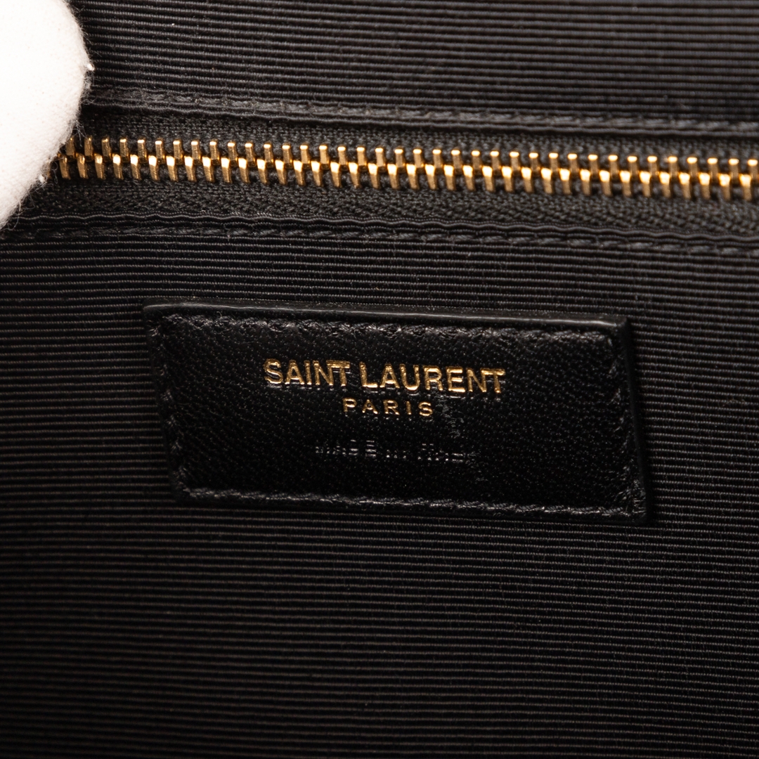 A vintage YSL black calf leather College bag with a certificate of authenticity, Approximately 23cm height, 31cm width.