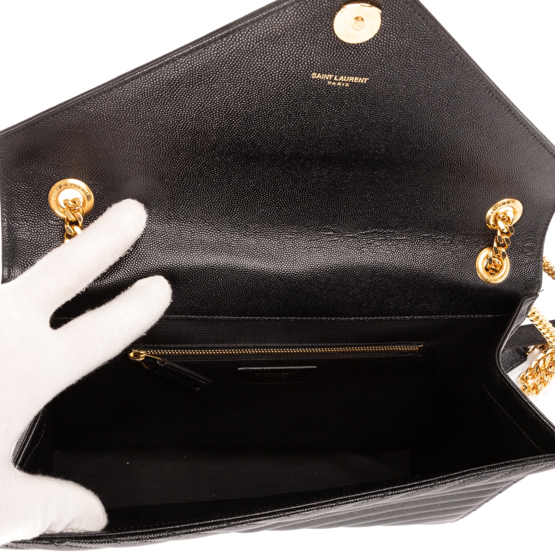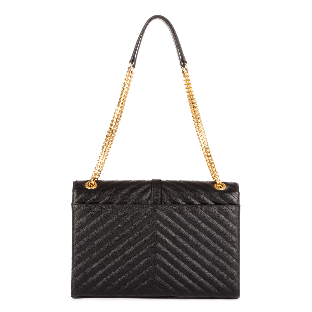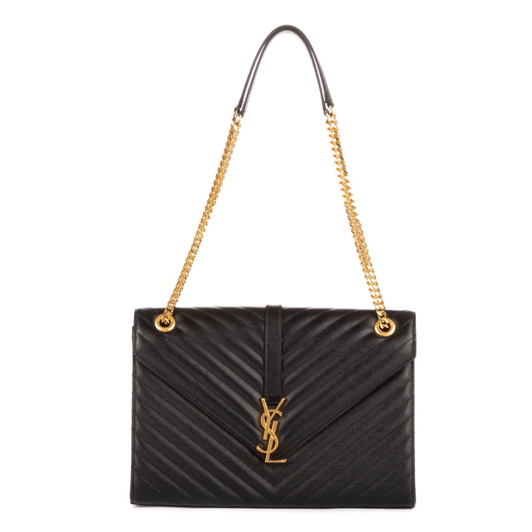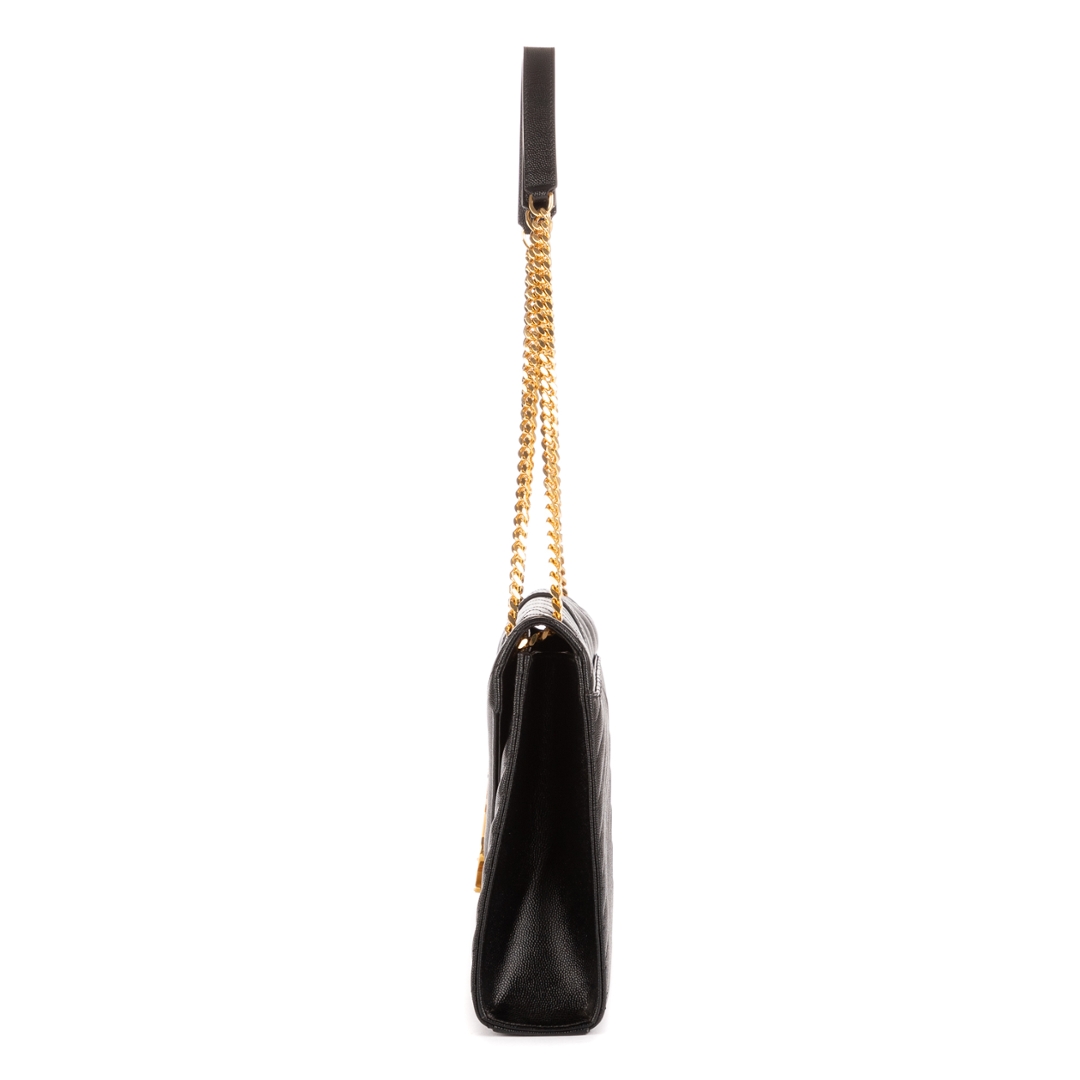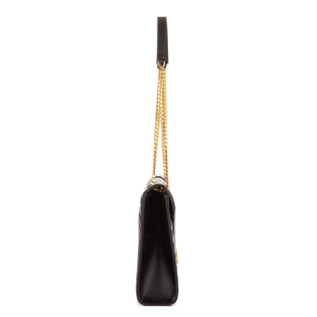 A vintage YSL black calf leather College bag with a certificate of authenticity, Approximately 23cm height, 31cm width.