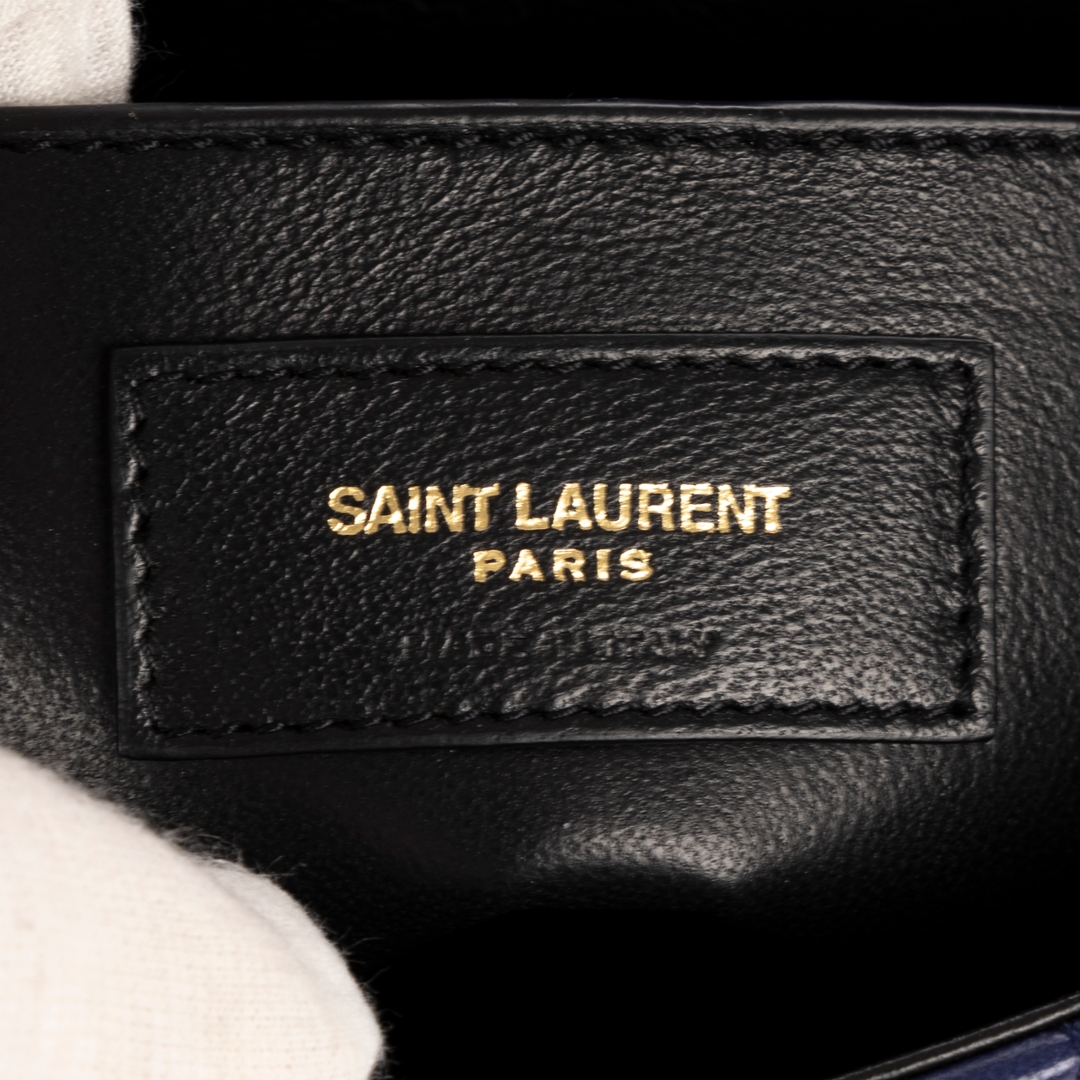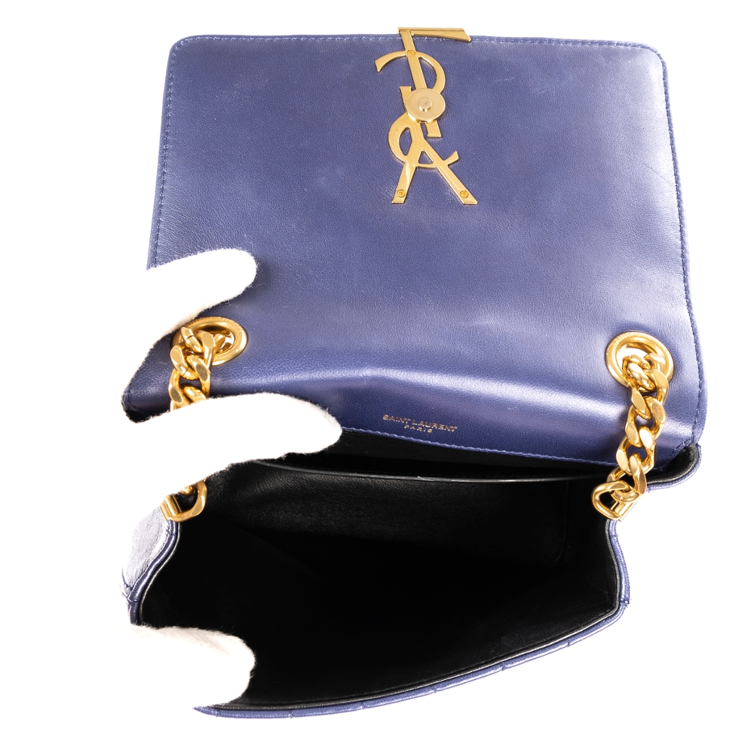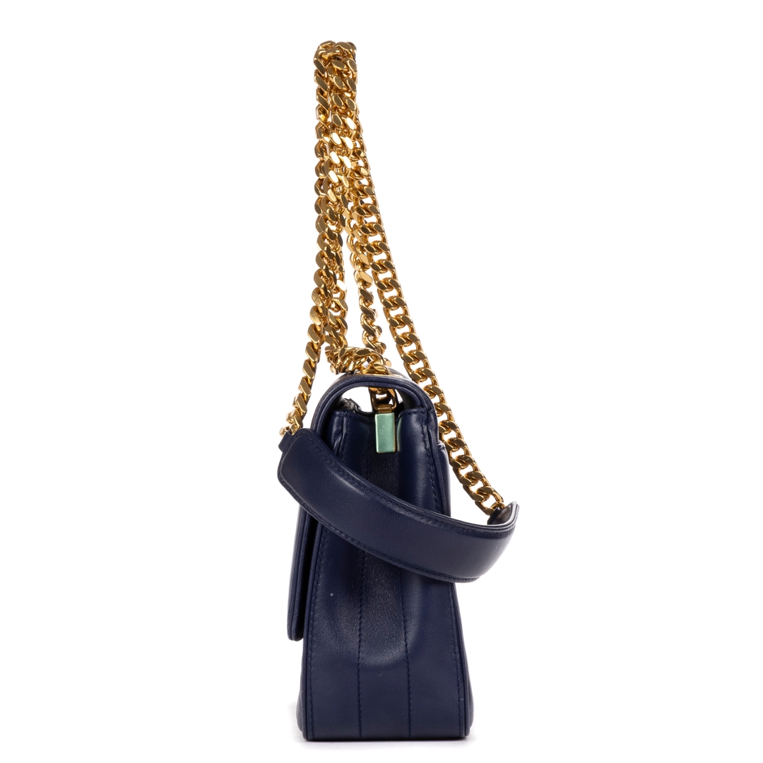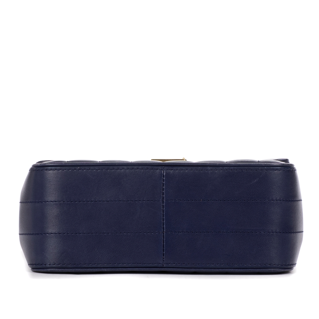 A vintage YSL dark blue calf leather Vicky Chain Flap Crossbody bag with a certificate of authenticity, Approximately 17cm height, 20cm width.