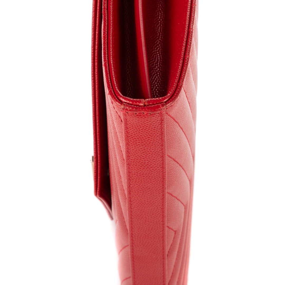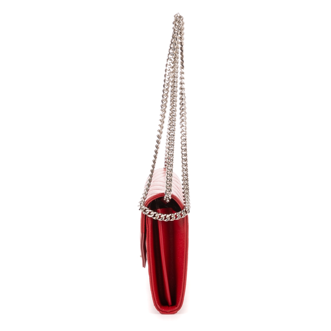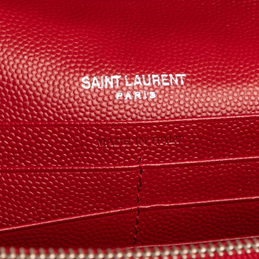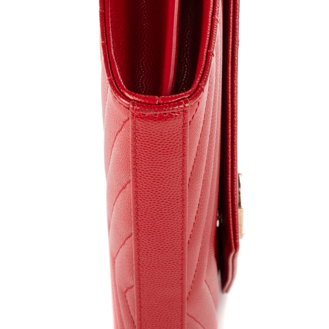 A vintage YSL red calf leather Wallet on Chain bag with a certificate of authenticity, Approximately 13cm height, 27cm width.